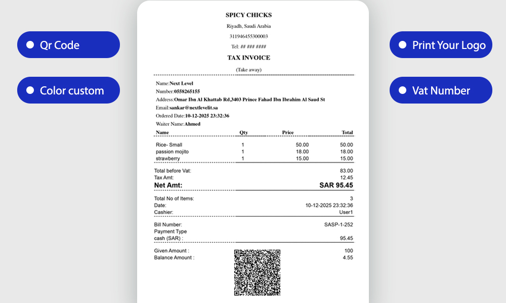 ارتقِ بتجربة إعداد الفواتير مع نظام نقاط البيع الذكي من أوفرسي بي أو إس، حيث إنه مصمم للمطاعم الراقية وشركات البيع بالتجزئة. يُمكنك تخصيص تنسيقات الفواتير، وقبول طُرق دفع متعددة، ودمج ضريبة القيمة المضافة بسلاسة. يضمن لك النظام إنشاء إيصالات احترافية، وتقسيم الفواتير دون عناء، وحفظ سجلات مفصلة للمعاملات، وكل ذلك ببضع نقرات فقط.